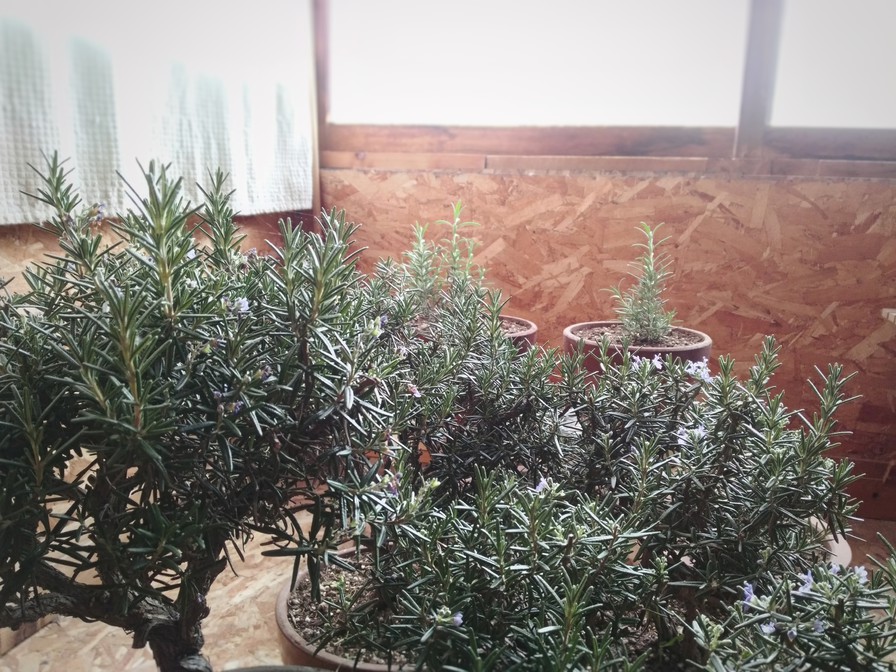 露地から引越て越冬中のローズマリー、北海道では一番難しいハーブかも。